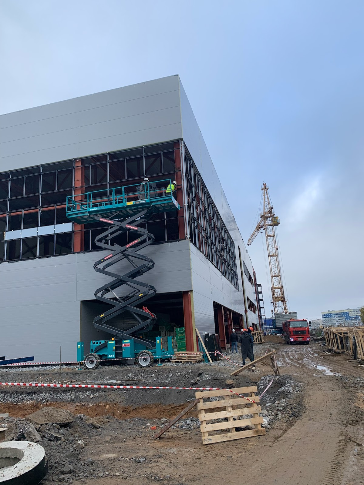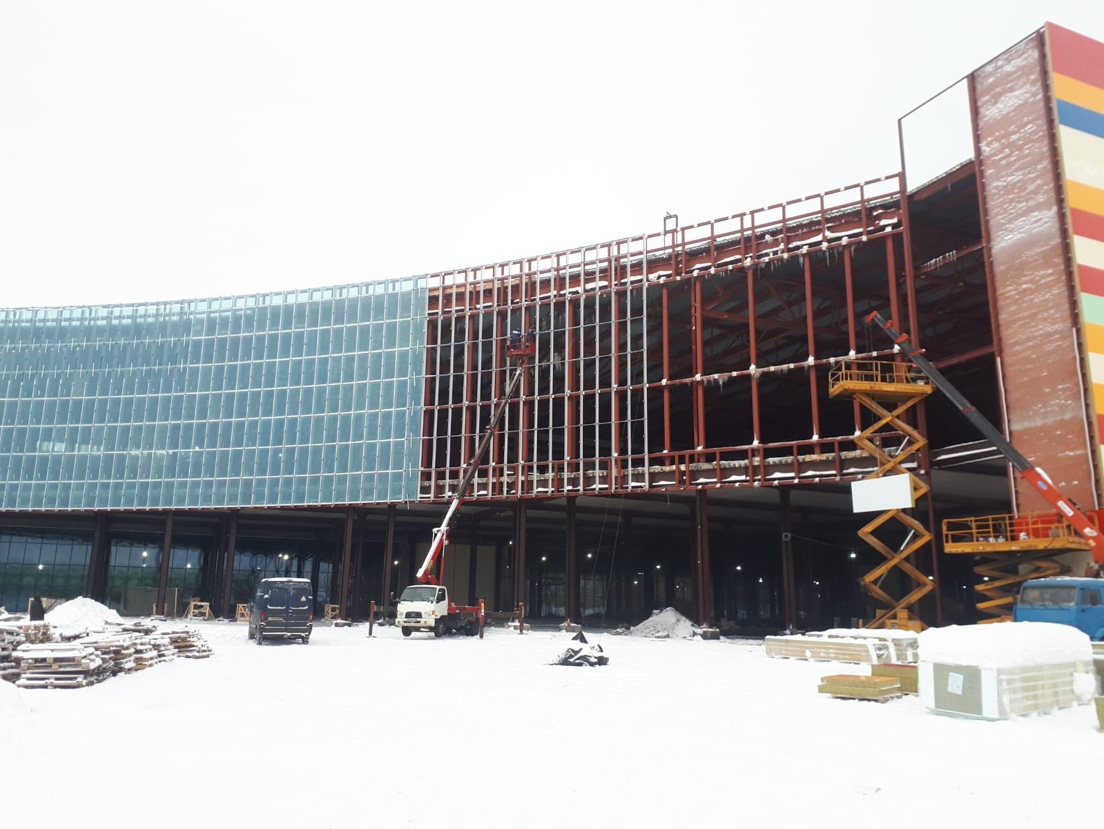 Устройство полного теплового контура здания: сборка несущего каркаса, монтаж сэндвич-панелей, остекление