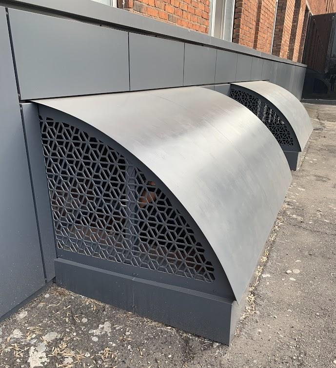 Облицовка цоколя АКП, изготовление и монтаж м/конструкций на приямках с отделкой АКП