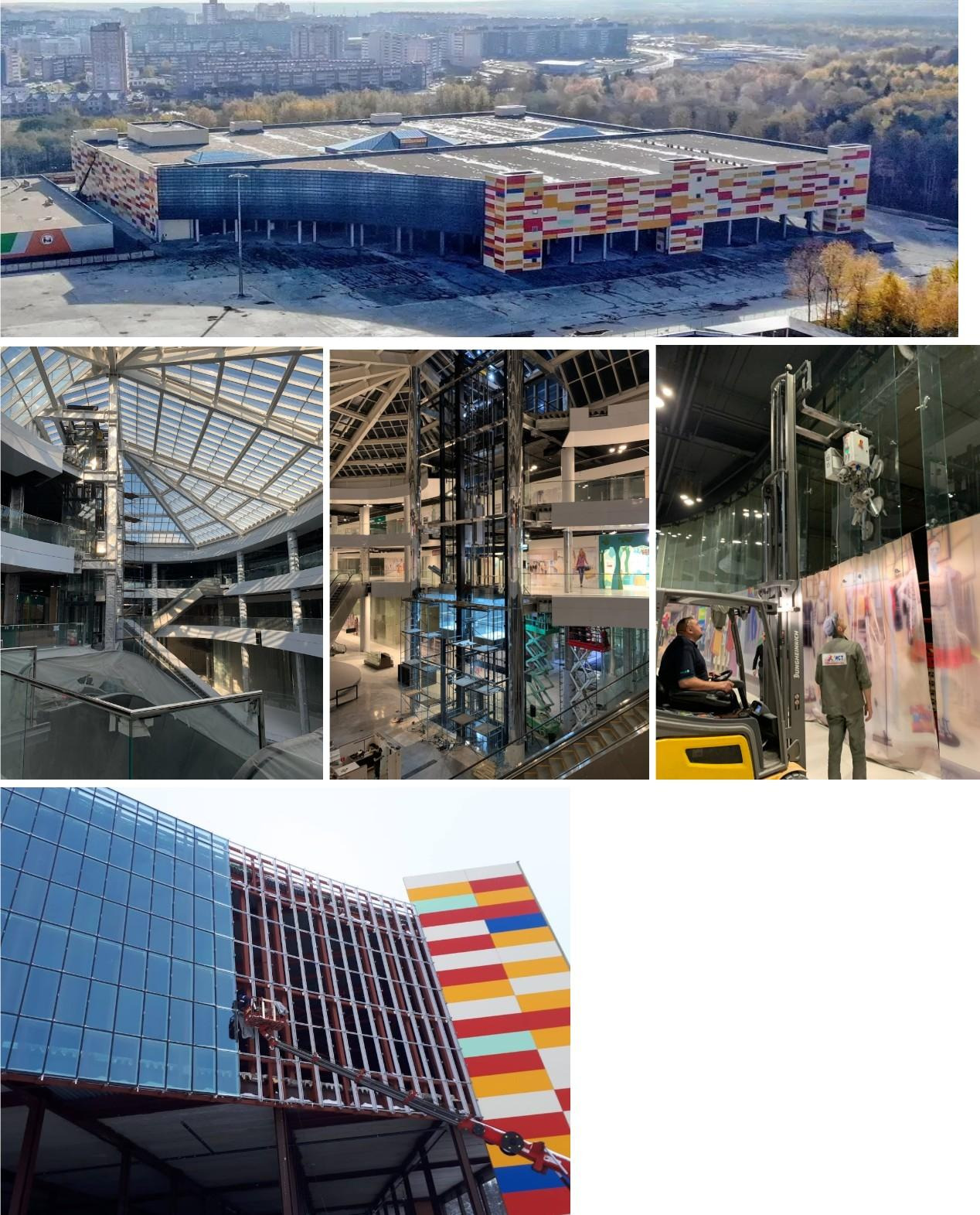 алюминиевых конструкций (стоечно - ригельные), окон, зенитных фонарей, подшивка перекрытий атриумов (фризов) алюминиевыми кассетами, облицовка колонн АКП, монтаж ограждений, стеклянных перегородок